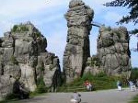 Zwischen einer halben und einer Million Menschen besuchen jährlich die Externsteine. In etwa 8 km Entfernung liegt das Hermannsdenkmal, das vergleichbar viele Besucher aus Nah und Fern anzieht. Einige der beeindruckenden Externsteine können bestiegen werden. Mit dem Auto kann man bis zu einem gut ausgeschilderten Parkplatz kurz vor den Externsteinen fahren: Über die B1 oder die B239 und zum Schluss über kleinere Nebenstraßen sind die Externsteine einfach zu erreichen.
