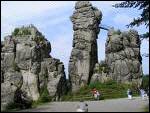DIE EXTERNSTEINE Zwischen einer halben und einer Million Menschen besuchen jährlich die Externsteine. In etwa 8 km Entfernung liegt das Hermannsdenkmal, das vergleichbar viele Besucher aus Nah und Fern anzieht. Einige der beeindruckenden Externsteine können bestiegen werden. Mit dem Auto kann man bis zu einem gut ausgeschilderten Parkplatz kurz vor den Externsteinen fahren: Über die B1 oder die B239 und zum Schluss über kleinere Nebenstraßen sind die Externsteine einfach zu erreichen. |